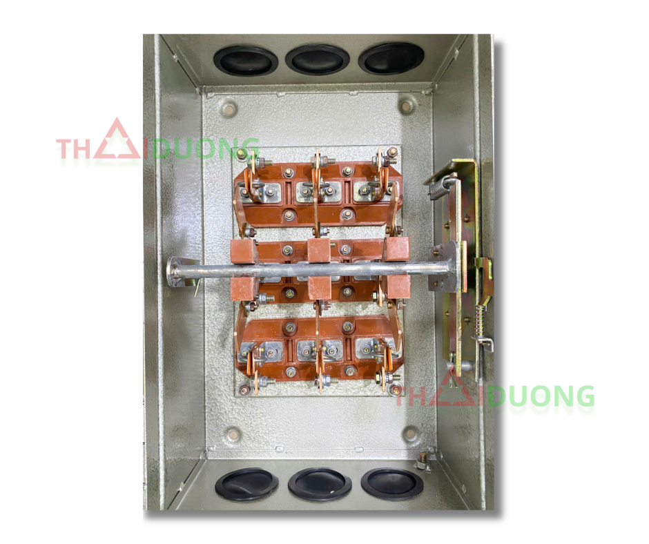 - Đóng và ngắt mạch điện 3 pha: Với dòng điện định mức 100A và điện áp định mức 600V, cầu dao này có khả năng đóng và ngắt dòng điện lớn trong các hệ thống điện 3 pha.